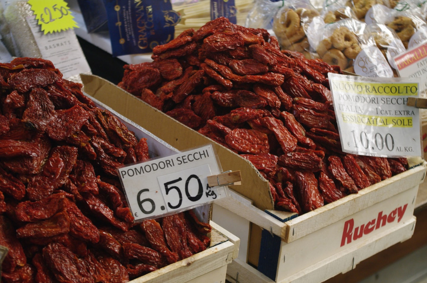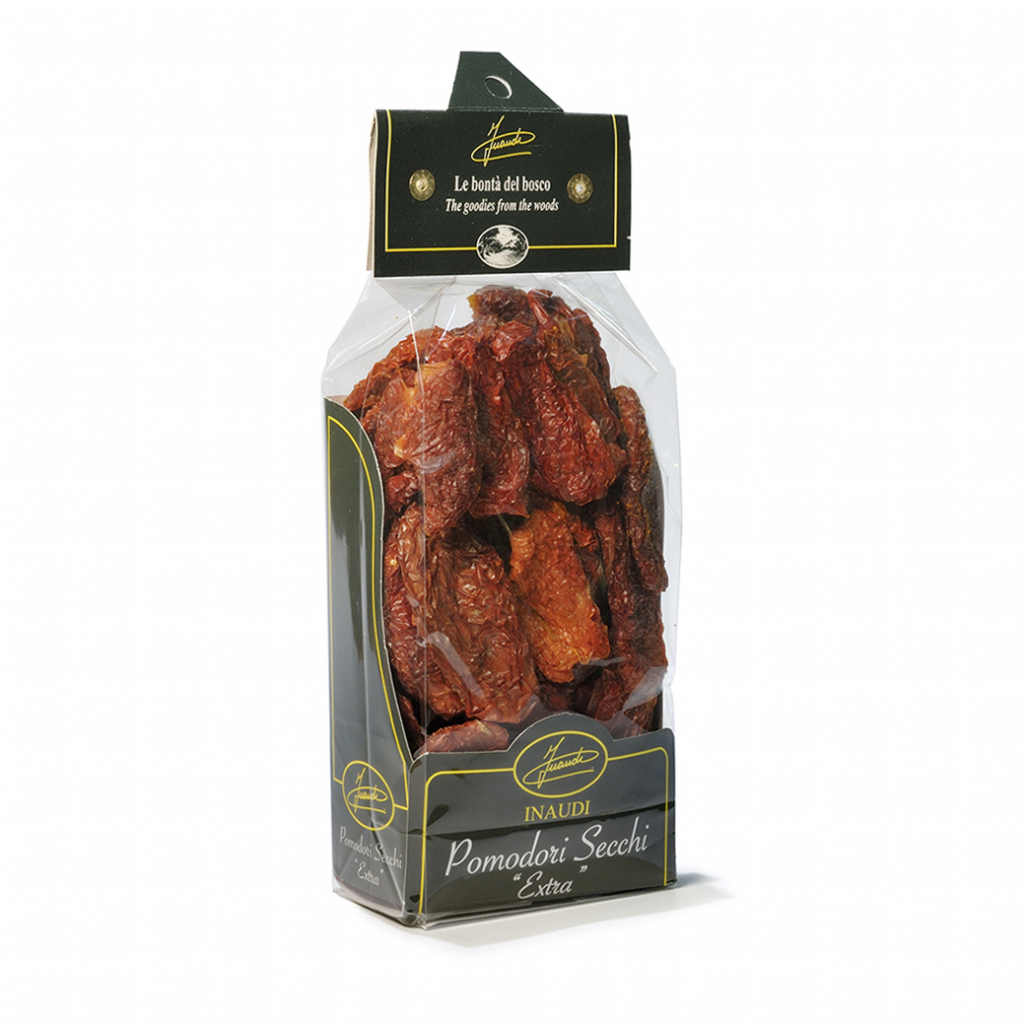 Producto deshidratado de alta calidad, secado al sol y originario de Italia. Presentado en bolsa tipo estuche marca Inaudi